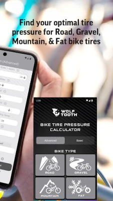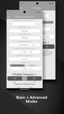 The Bike Tire Pressure Calculator has two modes for finding your perfect tire pressure. The basic mode accounts for abbreviated factors to quickly determine the best tire pressure, while the advanced mode considers several factors to identify the ideal tire pressure for the ride ahead.