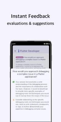- Instant feedback with evaluation and suggestions to improve your responses